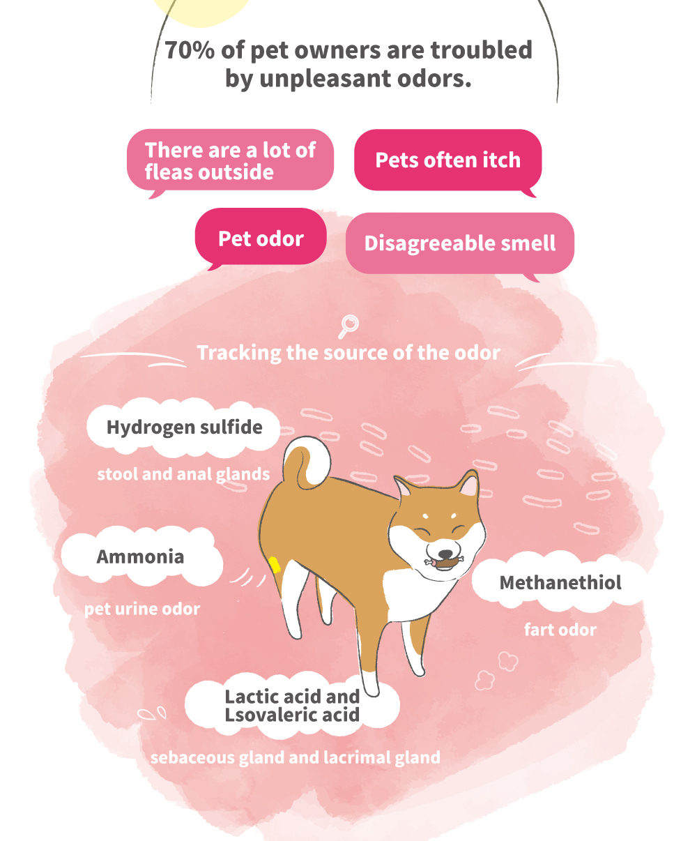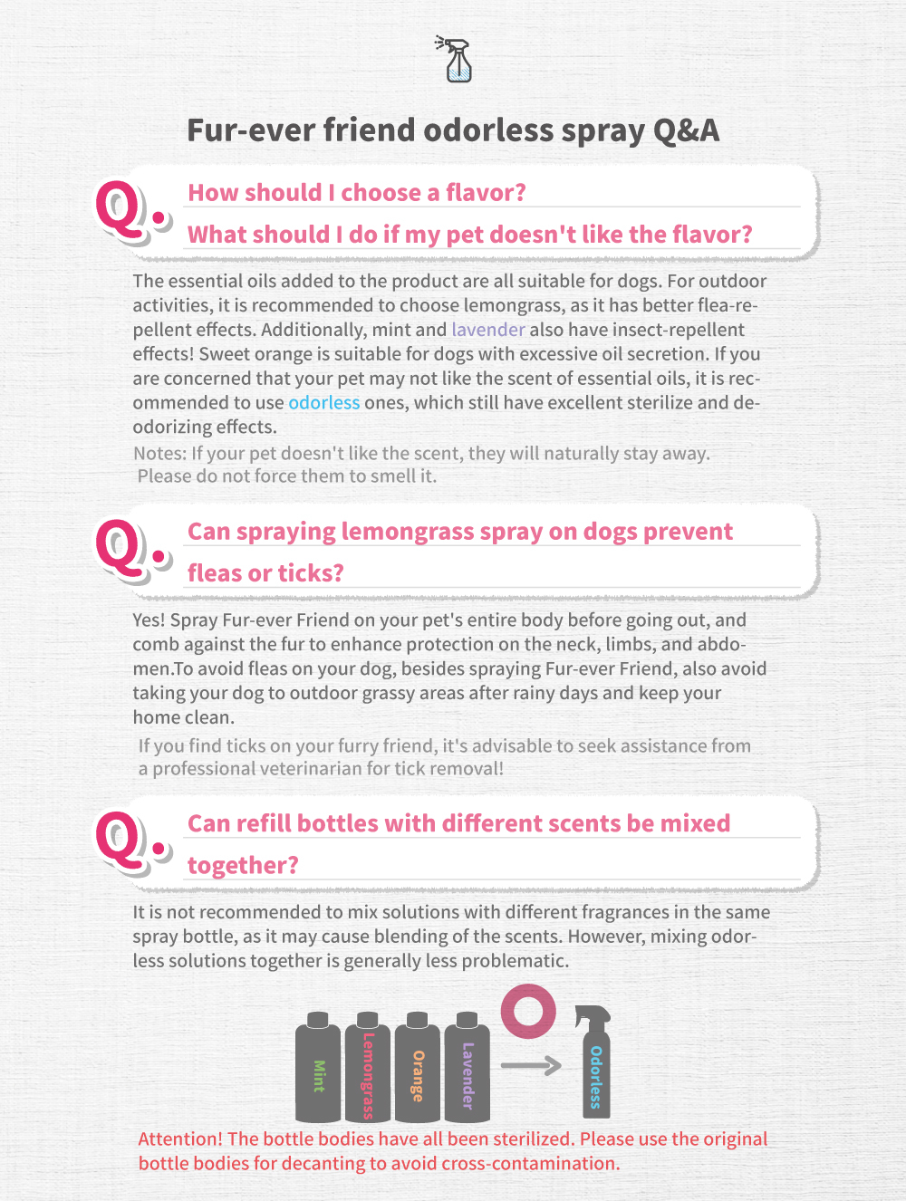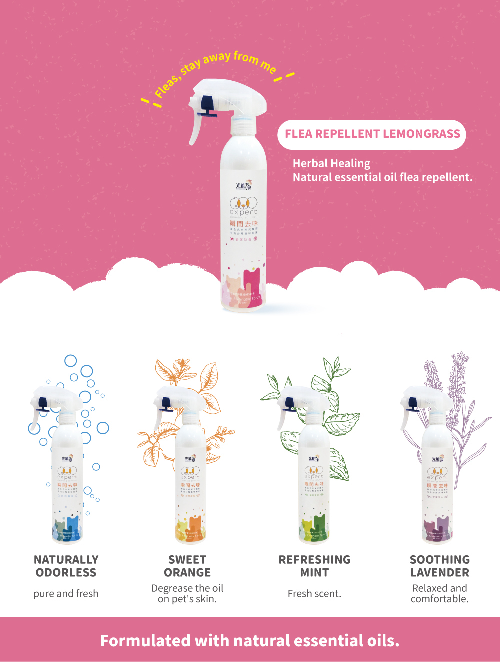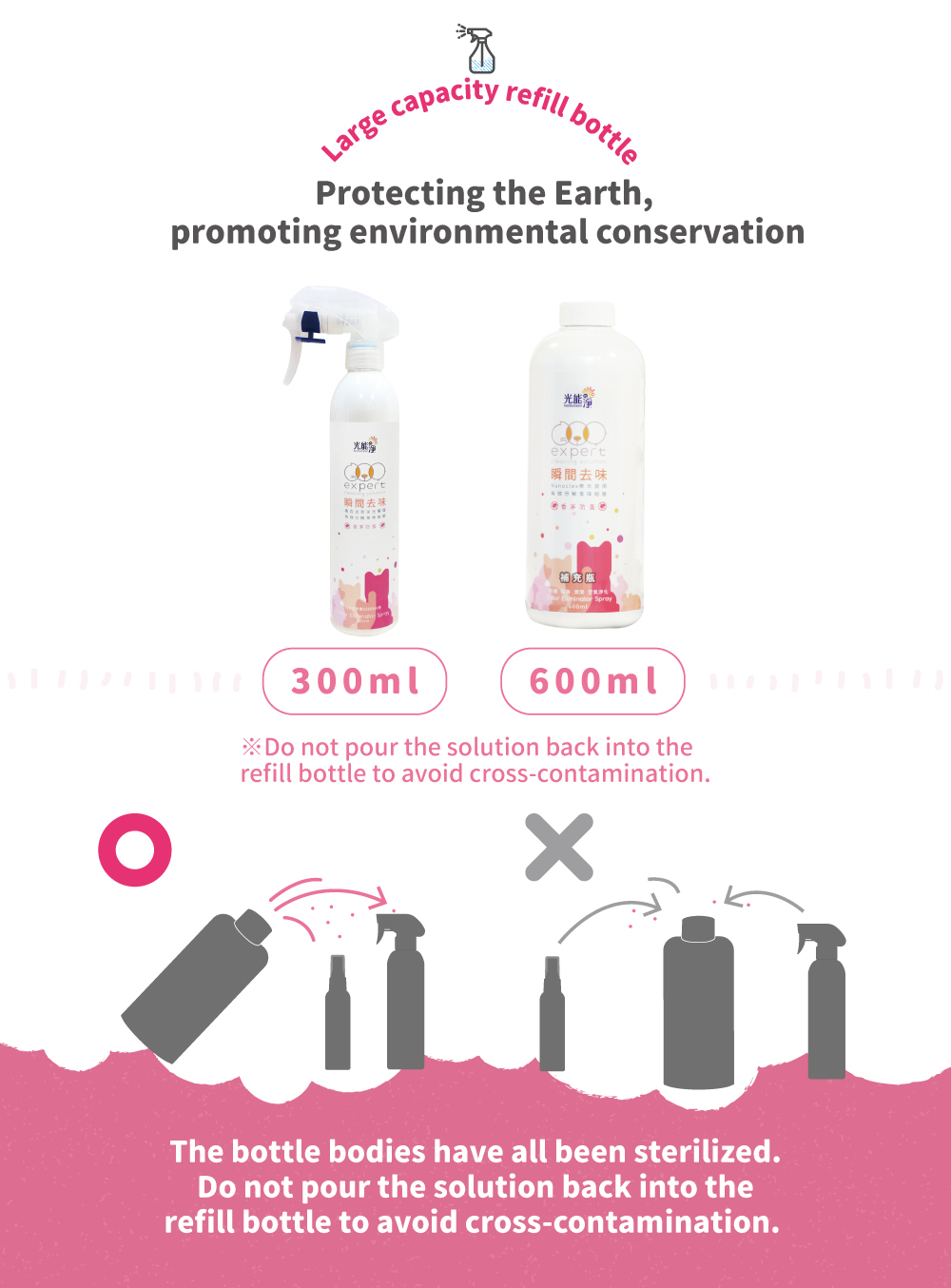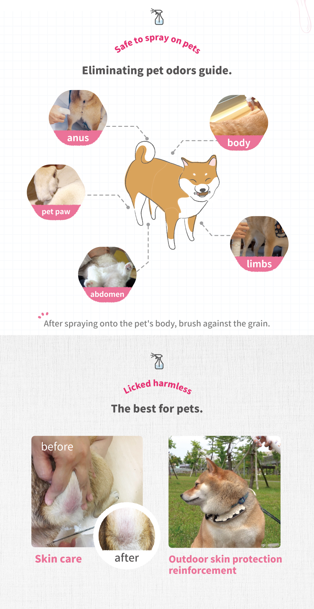 Clean, deodorizing, effective protection, neutral, mild and non-irritating, can be sprayed directly on pets.