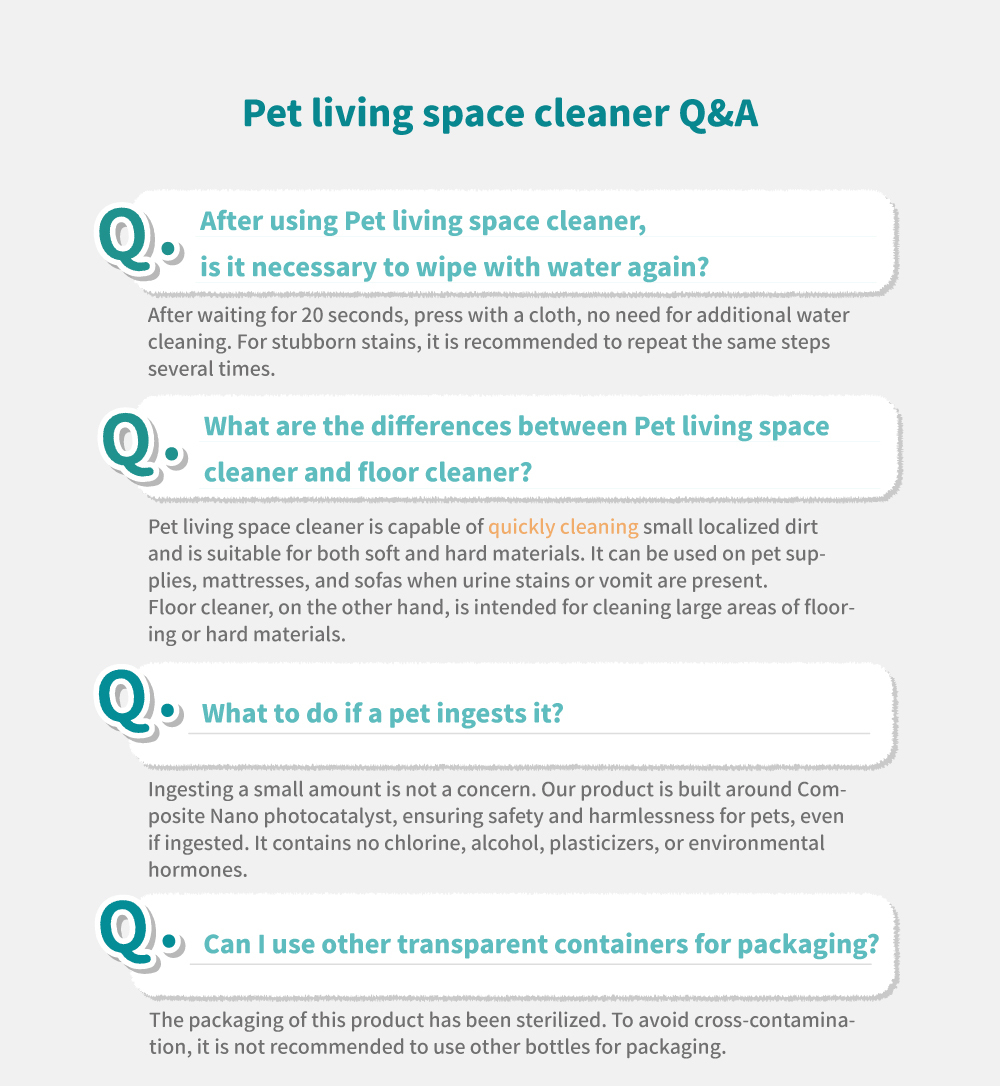 ※Usage instructions: For heavily soiled toilets or litter boxes with urine stains and urine scale, spray the product and leave it for 3-5 minutes. Then, rinse off with water or wipe dry with a tissue to effectively break down stubborn dirt. (Suitable for use on furniture, sofas, beds, etc.)