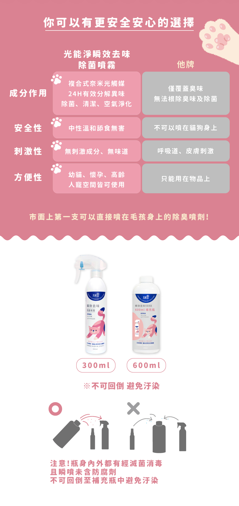 市面上唯一可直接噴灑於貓咪身上的除臭產品!