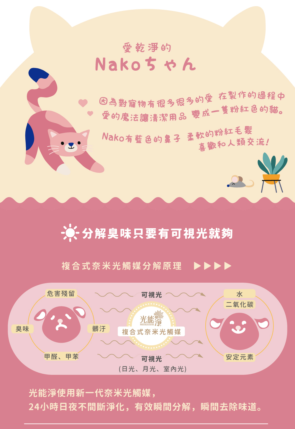 ►中性溫和不刺激 ►瞬間去除寵物異味 ►沒有二次汙染、二次傷害