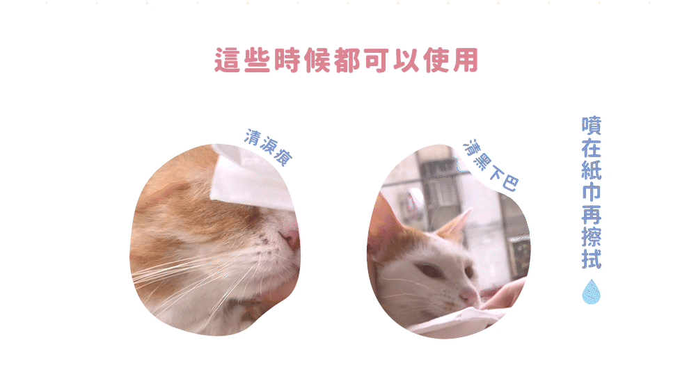 淚痕、下巴、等臉部清潔:噴在紙巾上再擦拭貓咪