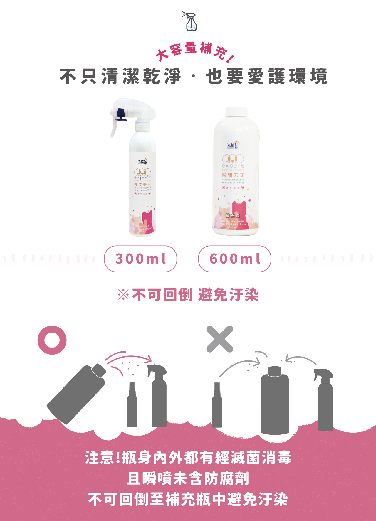 請使用相同味道之光能淨瞬間去味300ml進行分裝。