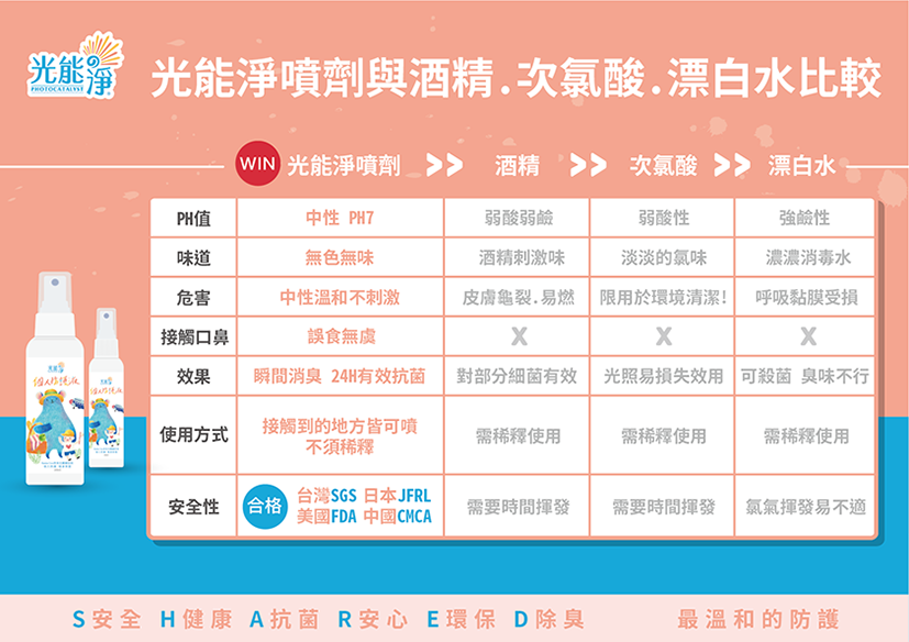 成分:可視光光觸媒中性水溶液、檸檬酸、中性純淨水
