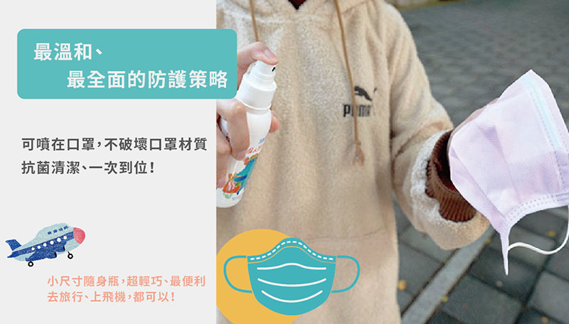 ►噴在口罩內外 增加重複使用率